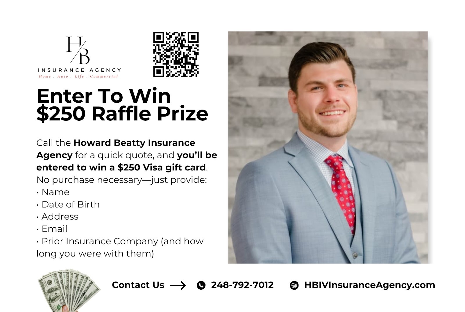 Howard Beatty Insurance Agency is offering a raffle prize of 250 dollars, and entering is simple.
